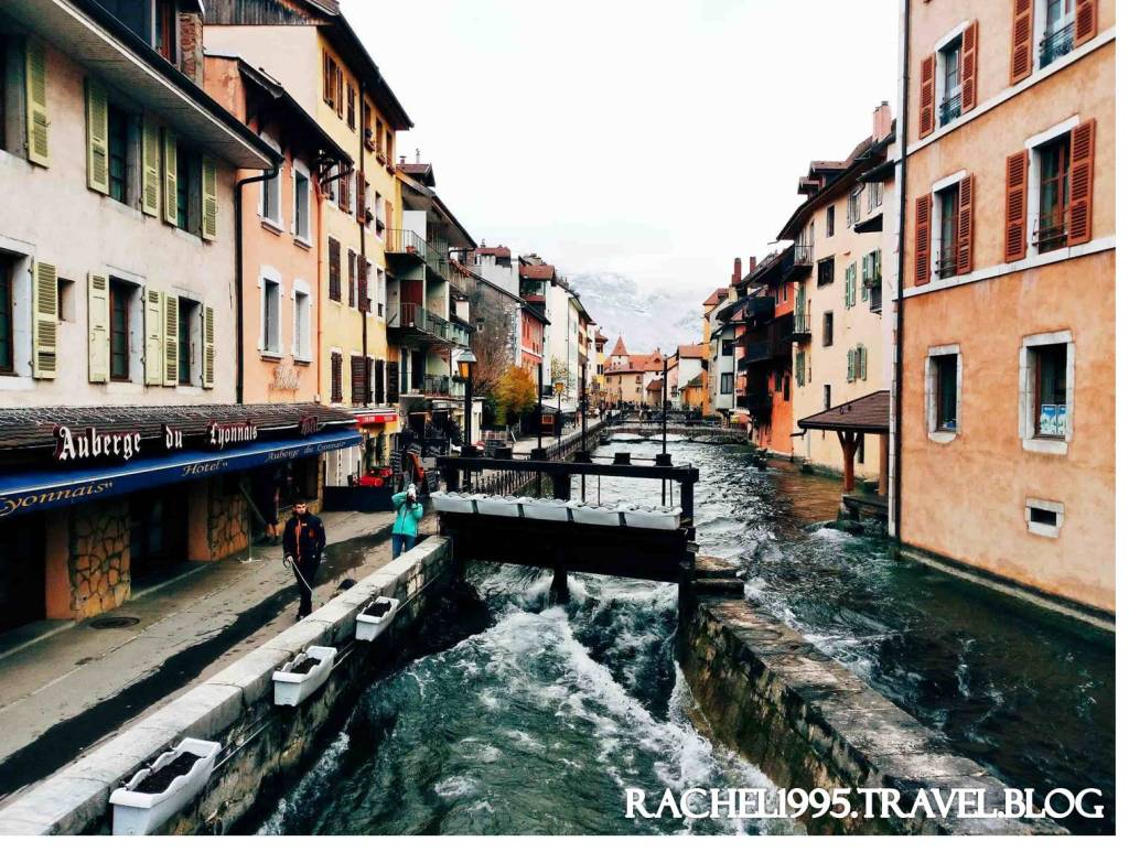 從青旅步行到安錫湖路途中的風景讓人很放鬆,安錫Annecy有許多的運河和河流流經,所以安錫 Annecy 也有阿爾卑斯山的威尼斯之稱,據說來面具節都有呢 。