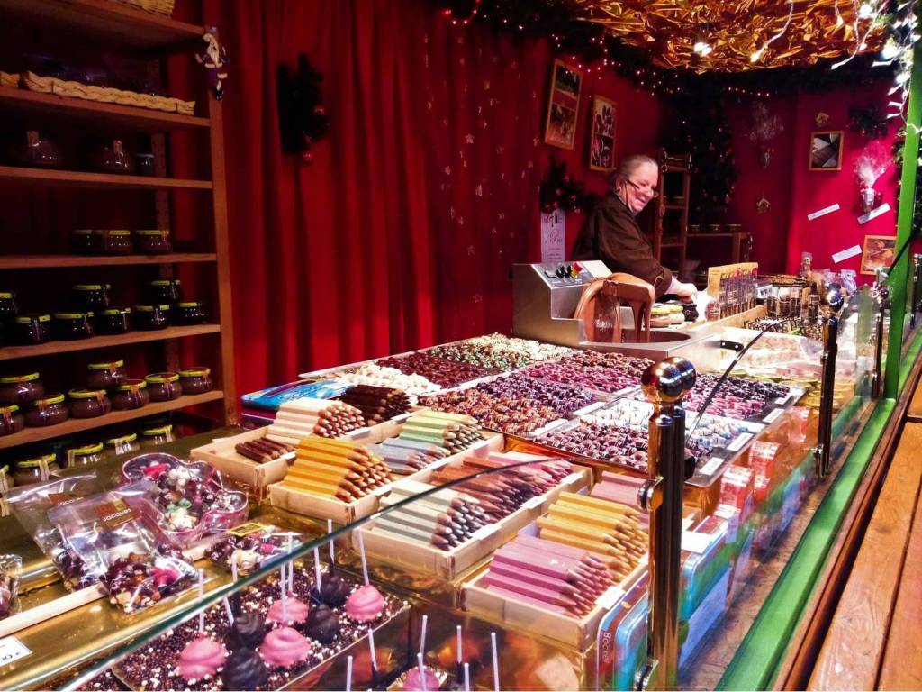 走在聖誕市集裡可以一直聞到甜甜的巧克力味,造型琳瑯滿目,還有各種巧克力醬,感覺配什麼都好吃啊!