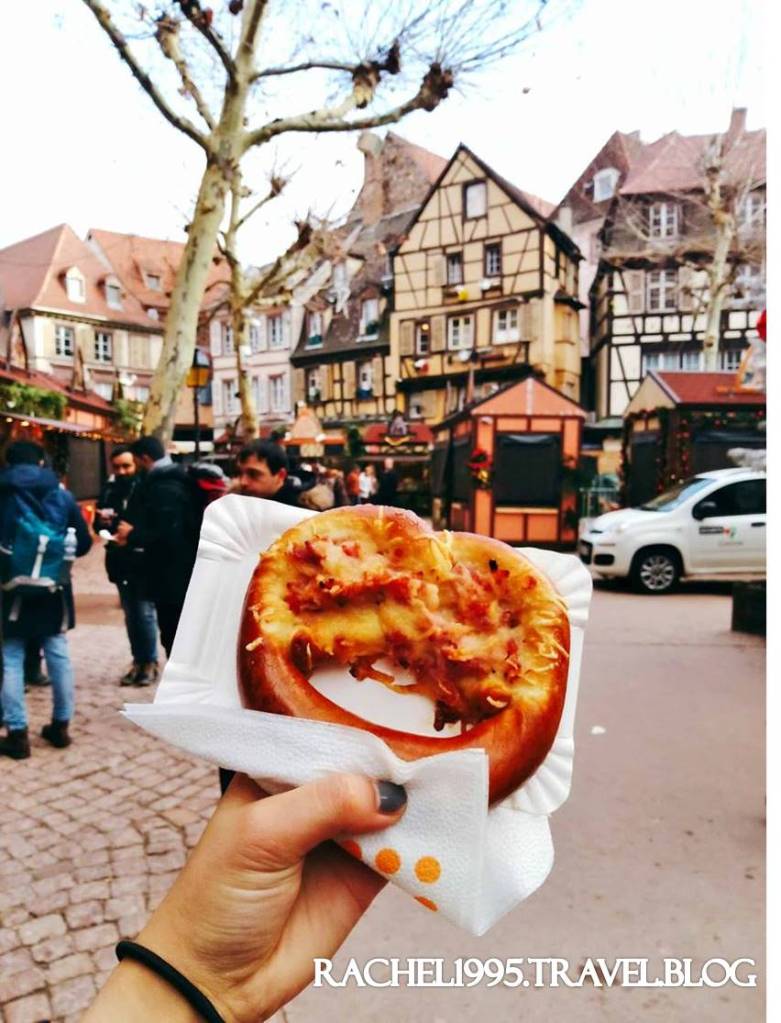 這是法國亞爾薩斯(Alsace)地區的特色料理,看起來很像pizza但不是,薄餅上會鋪上白醬、起司、培根等配料,因為是薄餅所以吃起來不會有太大的負擔,讓我可以多吃幾樣市集的美食!