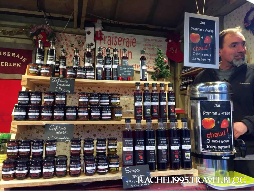 這位大叔賣好吃的自製果醬,還有熱的蘋果草莓綜合果汁,很好喝呀!